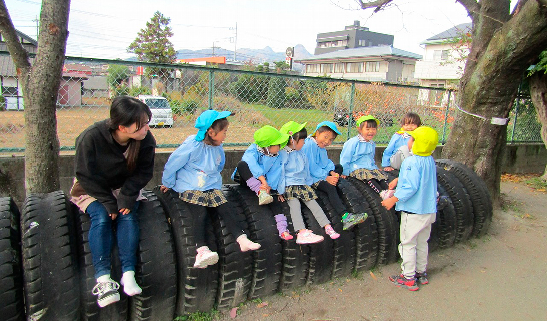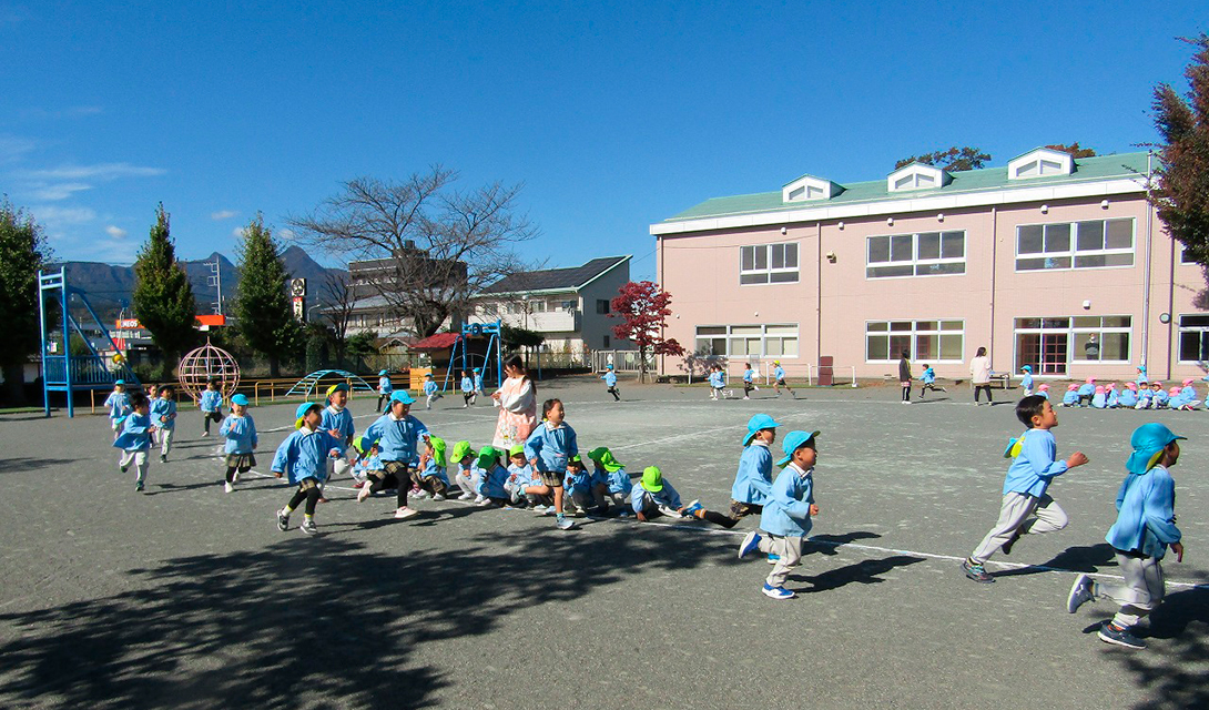 おおしまようちえんのいちにちの活動の様子を紹介しています。