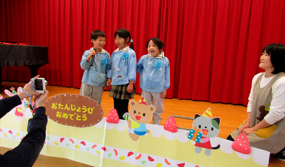 お友だちの前に出るのは、やっぱりドキドキして恥ずかしいけど、お祝いしてもらえるのはとっても嬉しいね♪