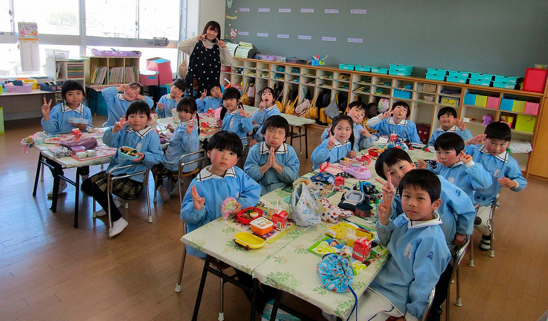 今日は年長さんにとって幼稚園で食べる最後のお弁当の日。