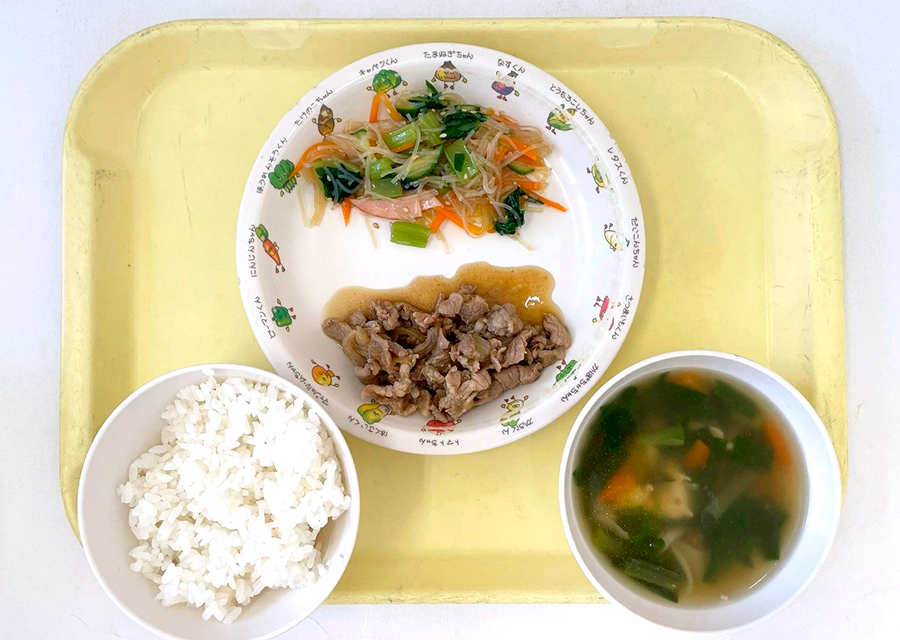 ごはん・焼肉・春雨サラダ・ワンタンスープ