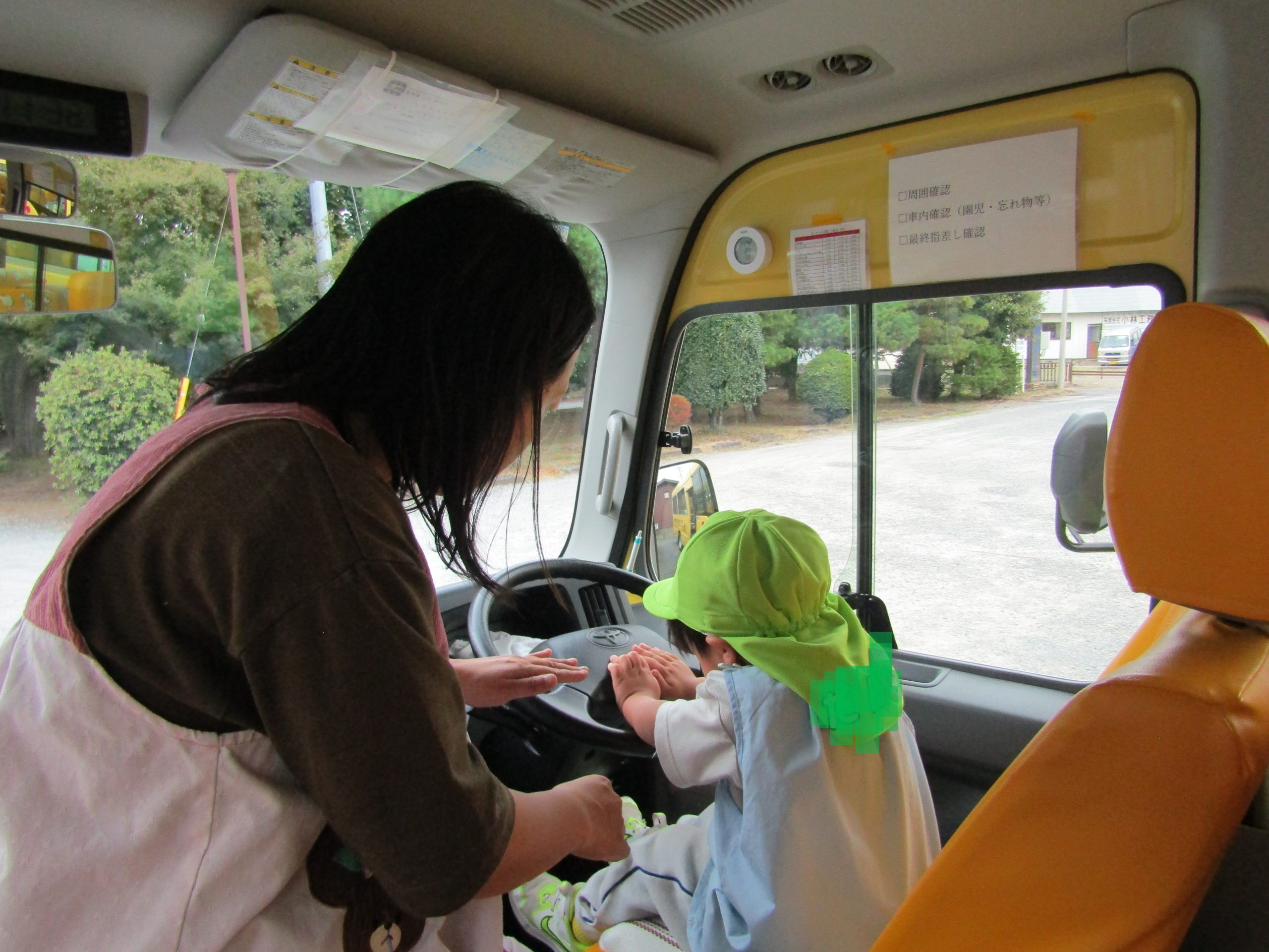 降車後 先生は、バス内に園児がいないか、忘れ物はないか等確認をします。
