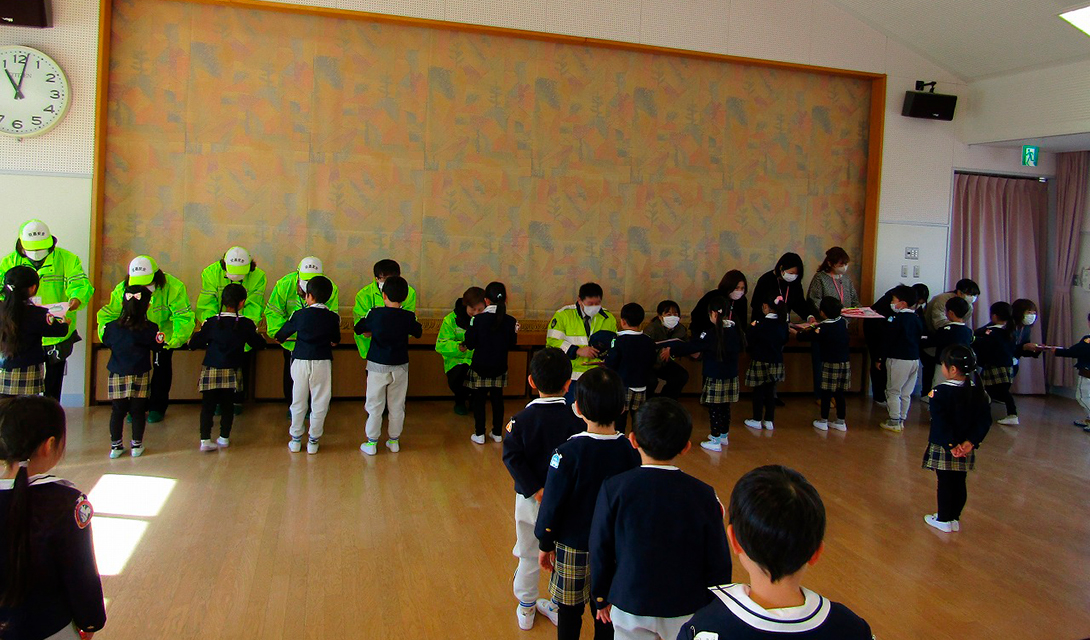 最後は、お世話になった警察の方、安全さん、市役所の方、りすちゃん役員さんにプレゼントを渡しました♪