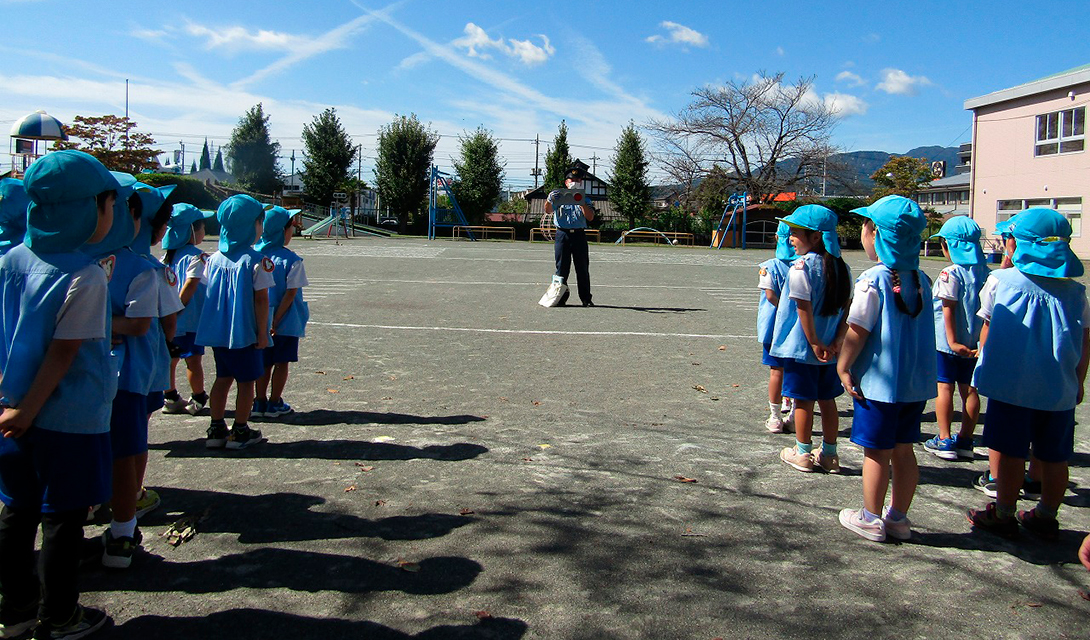 警察の方から交通ルールについてのお話をしてもらいました。信号のきいろは「注意」ではなく「止まる」。勉強になりました。
