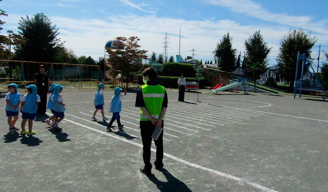 まずは、親子で横断歩道を渡り、2回目は子どものみで挑戦!