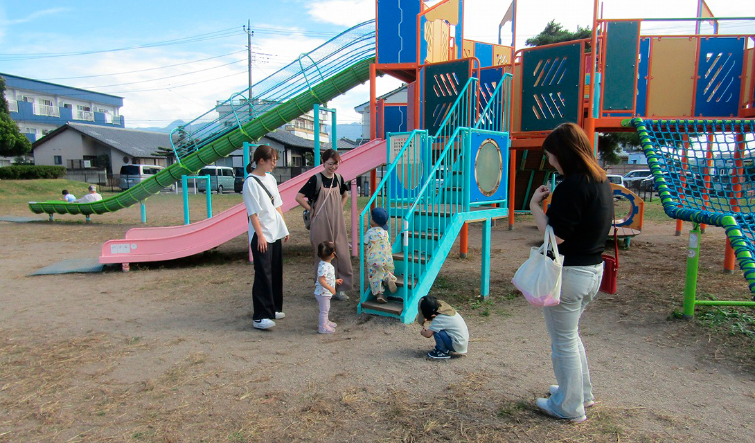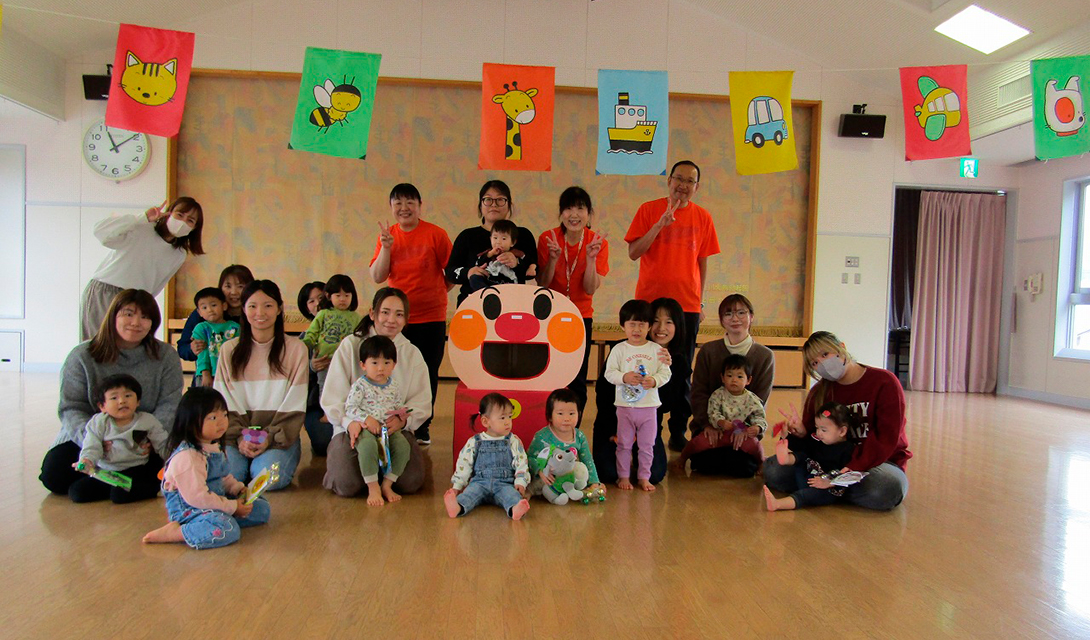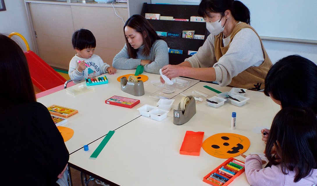 子育て支援「おおしまひろば」は、子育て中のお母さんと、赤ちゃんから就園前のお子さんを対象に、手遊びや絵本の読み聞かせ、製作などさまざまな活動を行っています。親子で一緒に遊んだり、お母さん同士、子ども同士のコミュニケーションを図ったりと、どなたでもご利用いただける場所です。ご近所のお友だちを誘って、ぜひ遊びに来てください。お待ちしております。