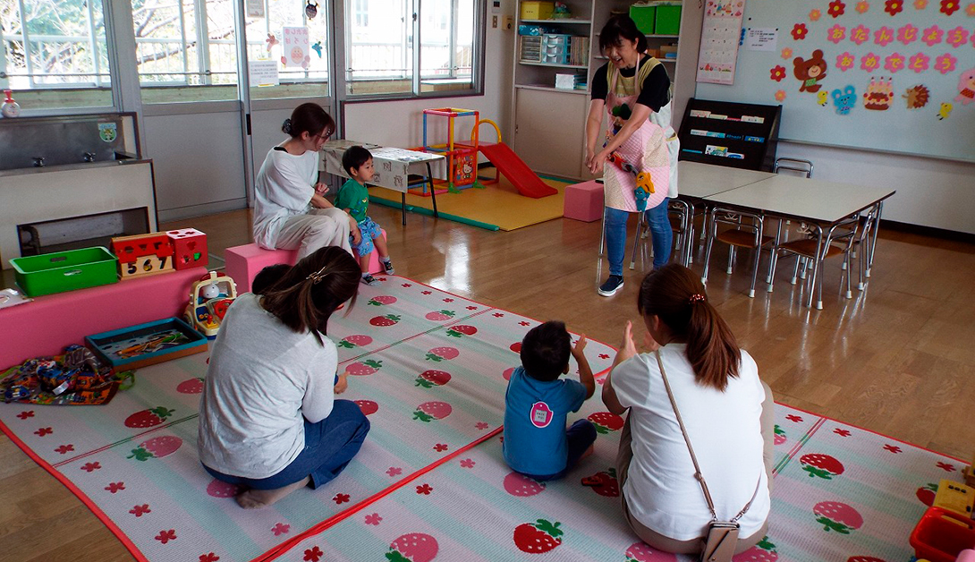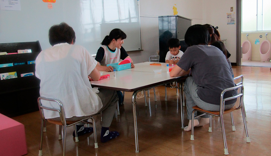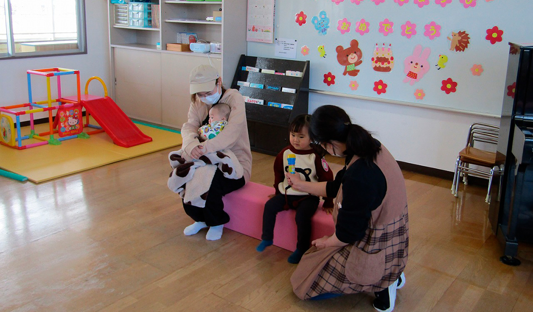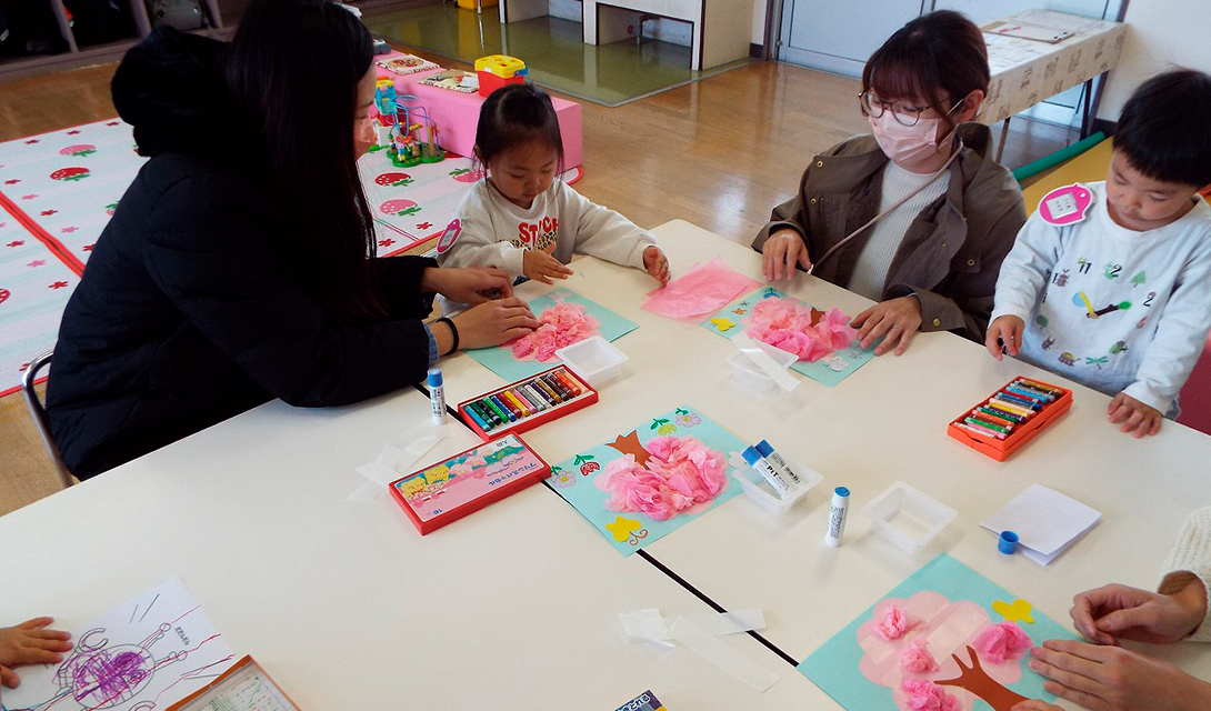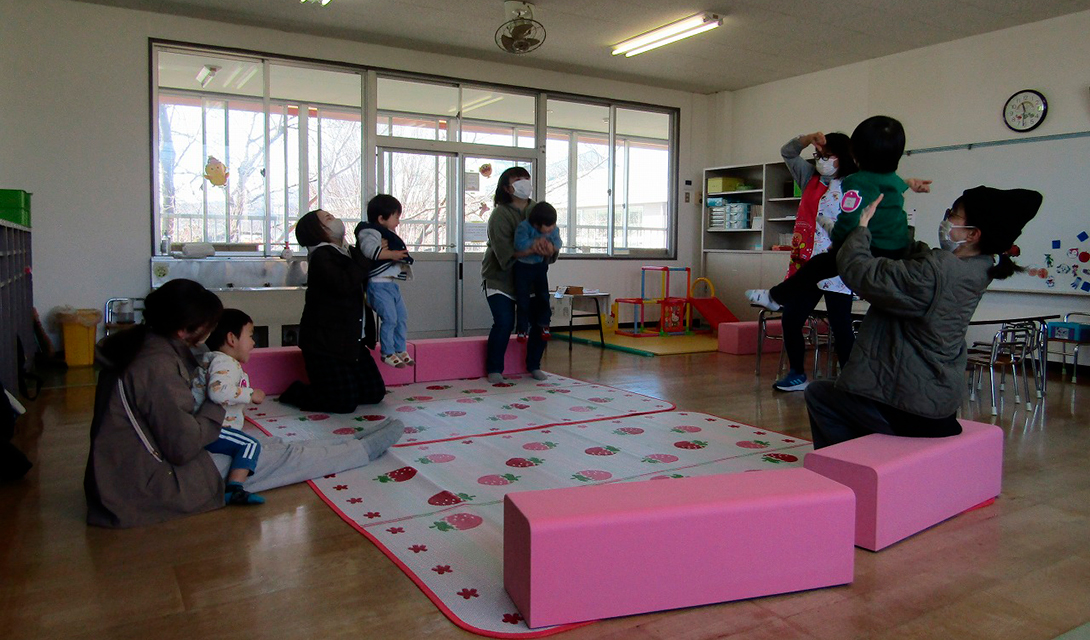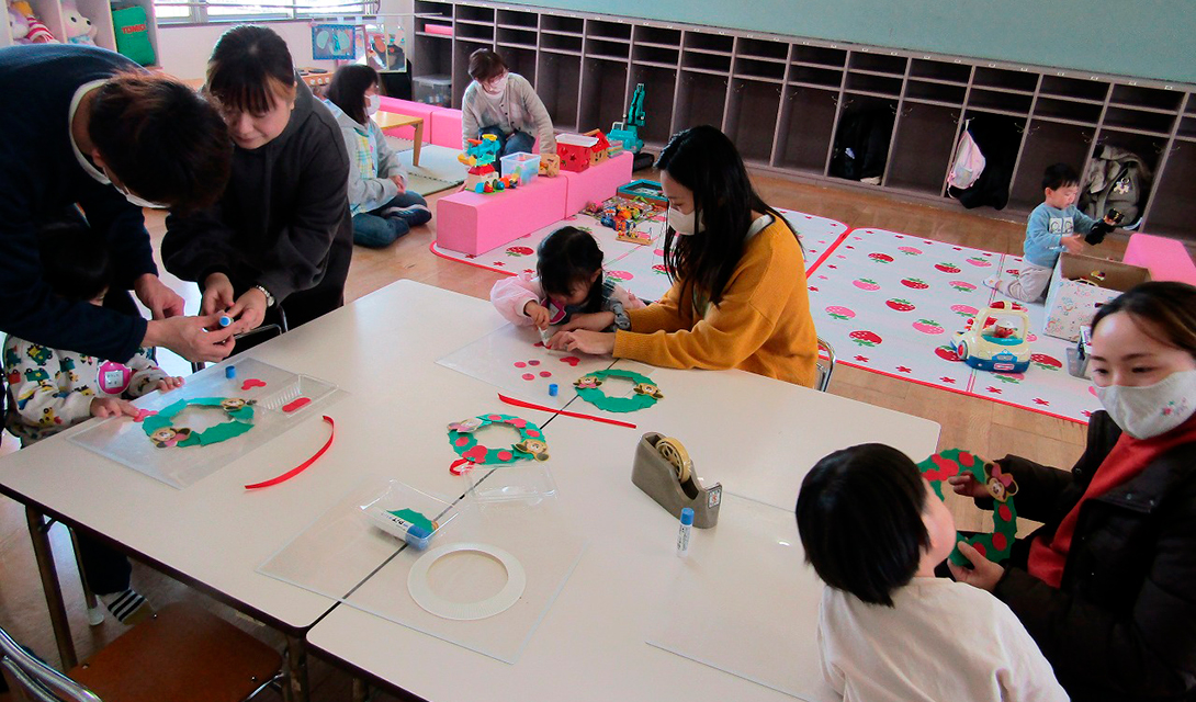 子育て支援「おおしまひろば」は、子育て中のお母さんと、赤ちゃんから就園前のお子さんを対象に、手遊びや絵本の読み聞かせ、製作などさまざまな活動を行っています。親子で一緒に遊んだり、お母さん同士、子ども同士のコミュニケーションを図ったりと、どなたでもご利用いただける場所です。ご近所のお友だちを誘って、ぜひ遊びに来てください。お待ちしております。