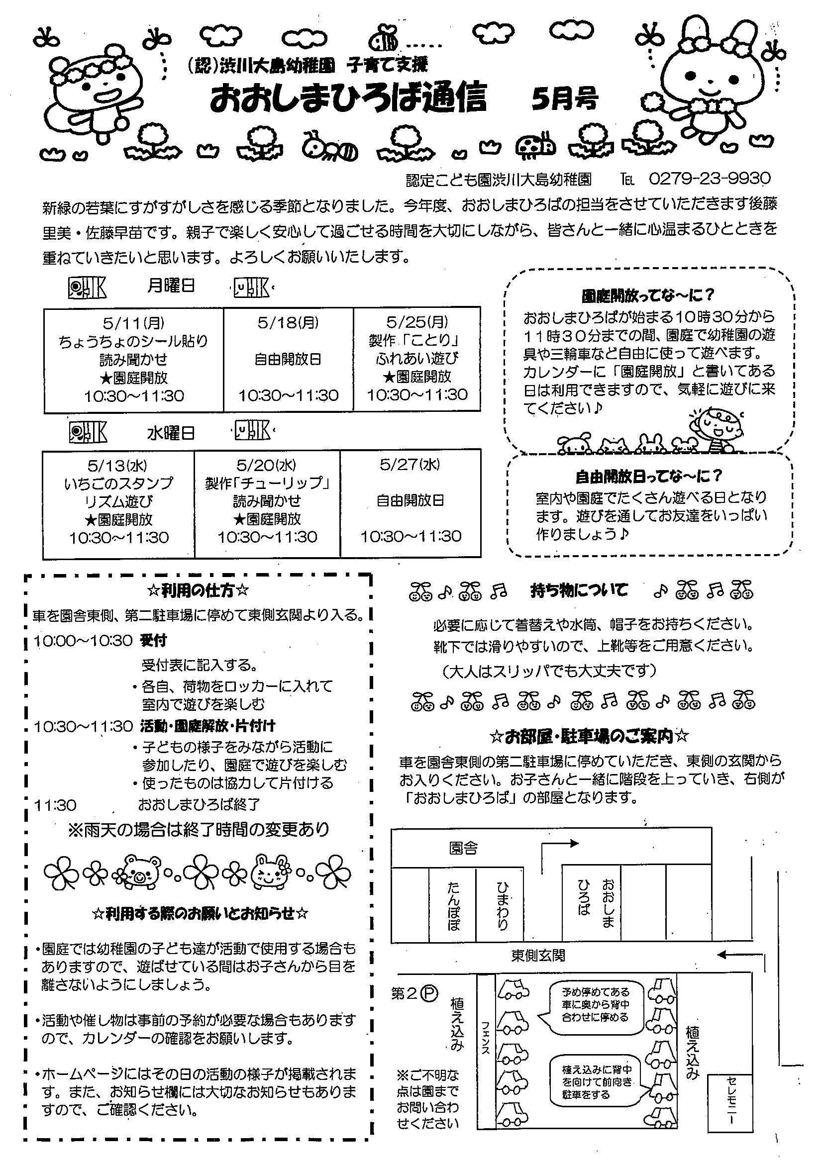 | 5月25日(月) | 製作「ことり」・ふれあい遊び ★園庭開放:10:30〜11:30 |