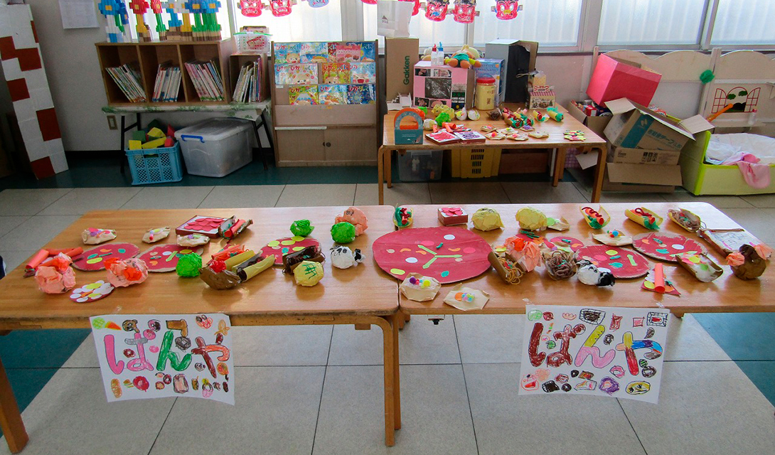 さあ、みんなで作ったパンとアイスを並べていよいよ開店で~す♪