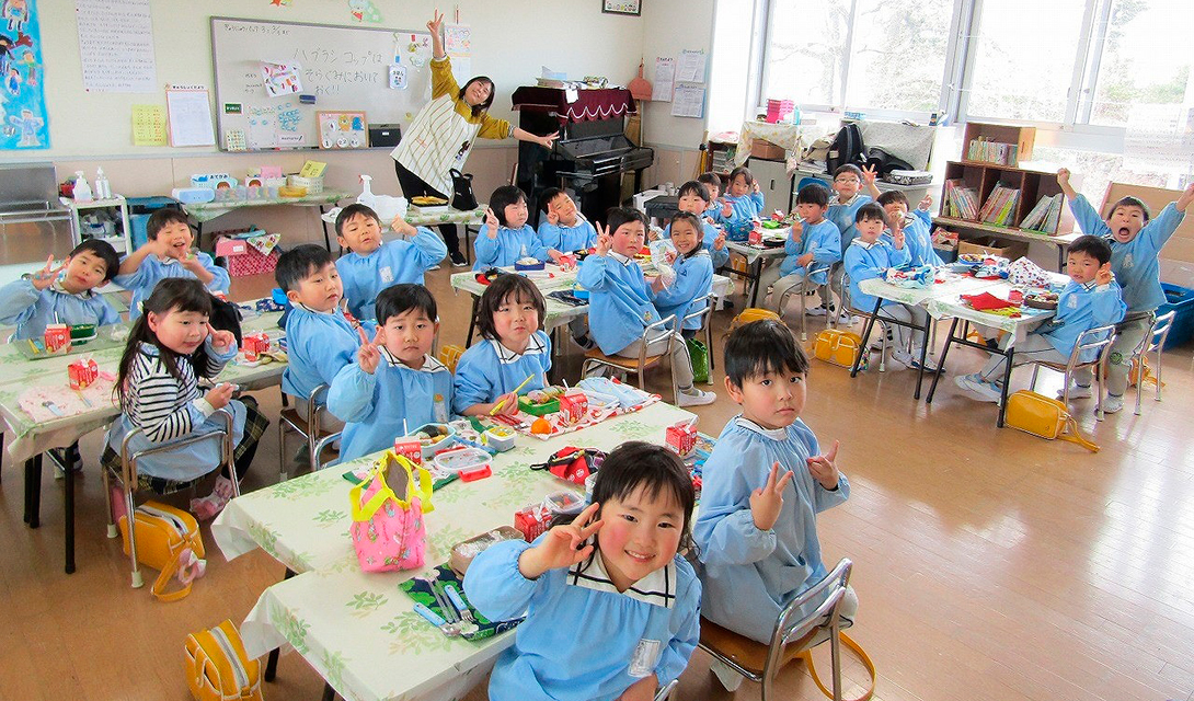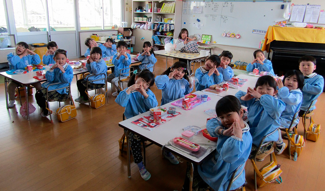 お別れ会の後は、幼稚園生活最後のお弁当を各クラスでお友だちと楽しそうに食べていました。