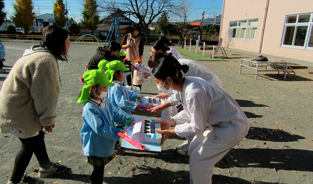 幼稚園で仕事をしている運転手さん、調理員さん、担任の先生、補助の先生、いちご組の先生に「いつもありがとうございます」の感謝の気持ちを伝えました♪