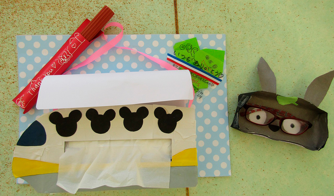 年少さんから望月先生と調理員さんには、ディズニーのティッシュケース、年中さんから運転手さんには、トトロの眼鏡置きがプレゼントされました☆