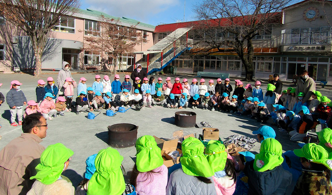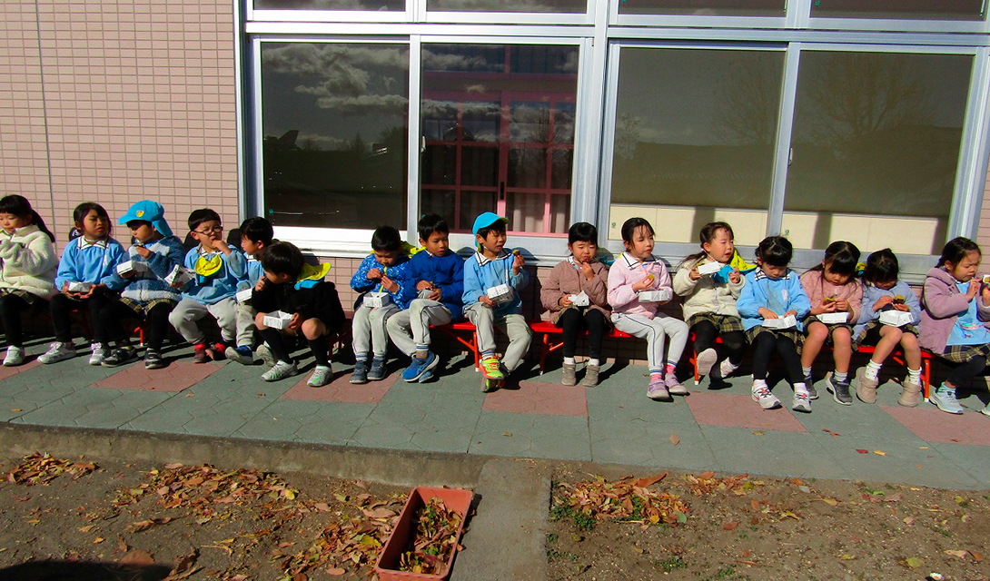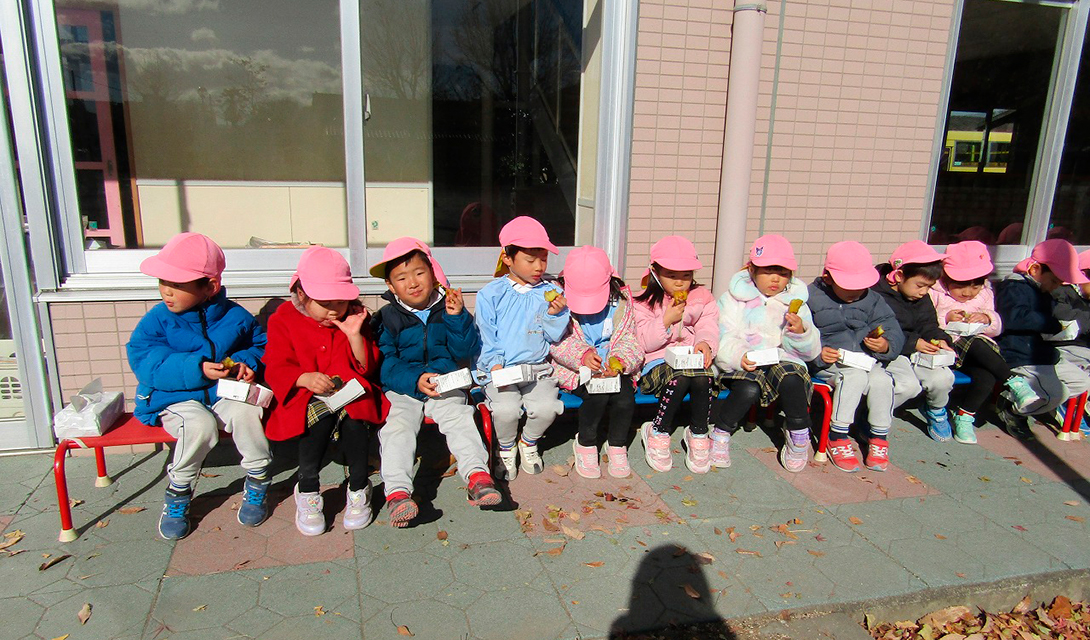 年中さんと年長さんは、ゲームを楽しんだ後に焼きいもを堪能しました☆今年の焼いももすご~く美味しかったね!